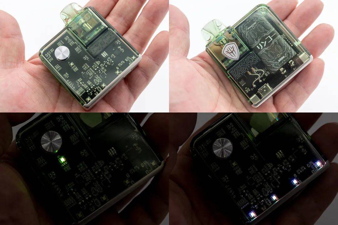 整体采用了大量的透明设计,在机身总共6个面里,5个面都是透明,内部的结构与电路元件一览无余,整体通透,风格吸睛。尤其是两条供电“飞线”更是成为了点睛之笔。