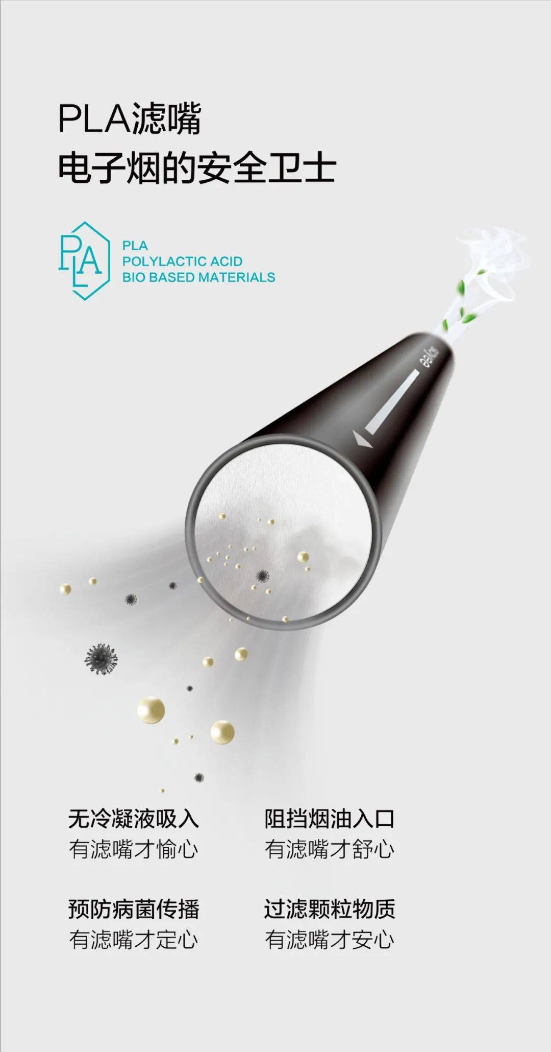 而在具体的产品形态方面,也有着许多在不同方面一直专注与执着的品牌,比如soyee“小叶”,就一直执着于给电子雾化设备插上“过滤嘴”。