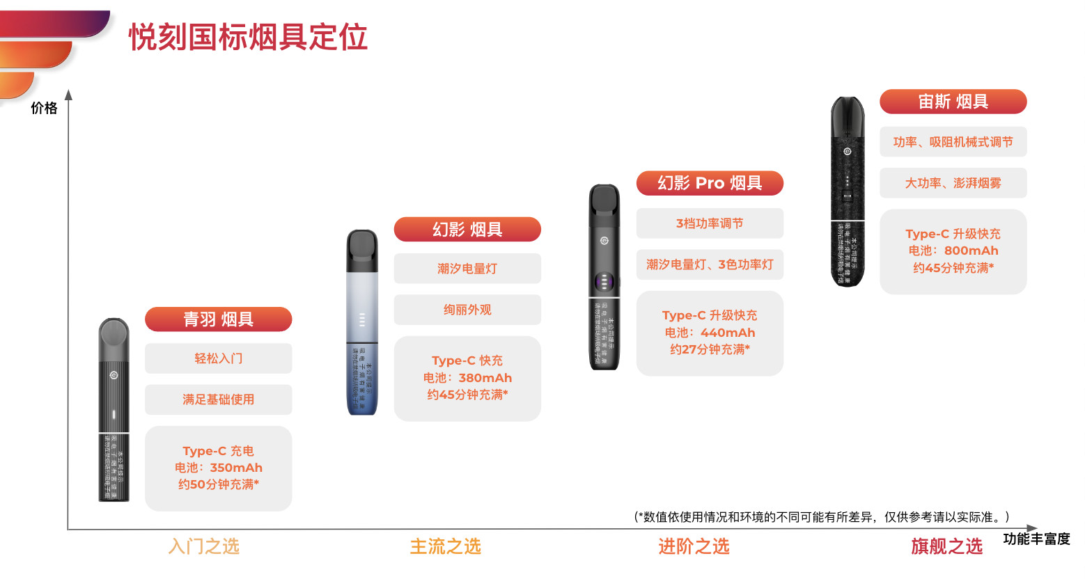 烟弹变化:目前上市的烟弹有山烤、岩烤、溪烟和瀑烟四个系列。在口味方面,国标产品仅有烟草口味。