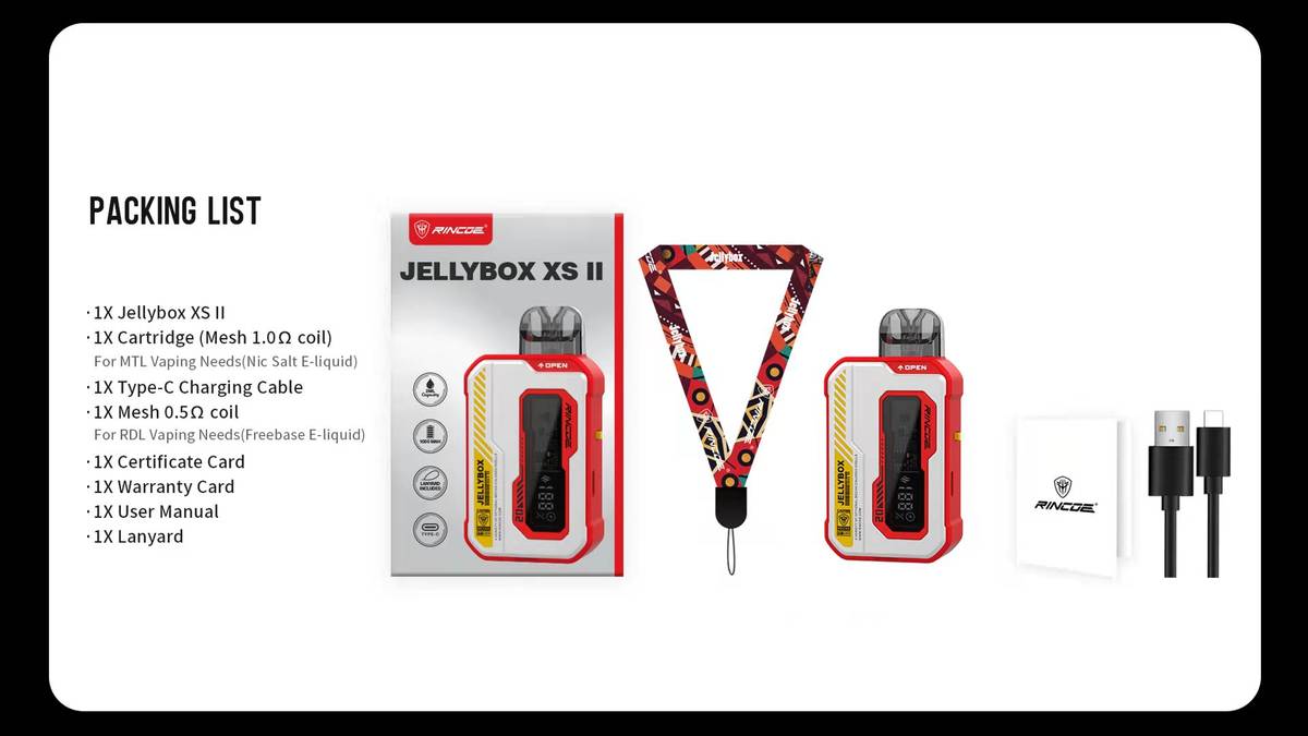 小果冻XS二代套装包含:主机+空仓+芯子2颗+Type-C 充电线+挂绳