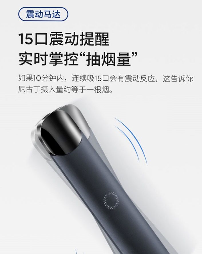 2、充电接口开始采用Type-c,并且新增抽15口震动提醒(一根烟≈15口),很有新意,附加的新的使用体验;